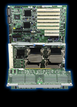 Up to 10 Hotswap SCSI drives and hot plugable PCI. Designed